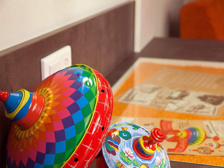 Wer kennt ihn nicht? Mindestens einmal hat ihn schon jeder gedreht. Der Brummkreisel, der seit Jahrzehnten in keinem Kinderzimmer fehlt und seine Wurzeln in Zirndorf hat, spielt in diesem modern gestalteten Zimmer die Hauptrolle.