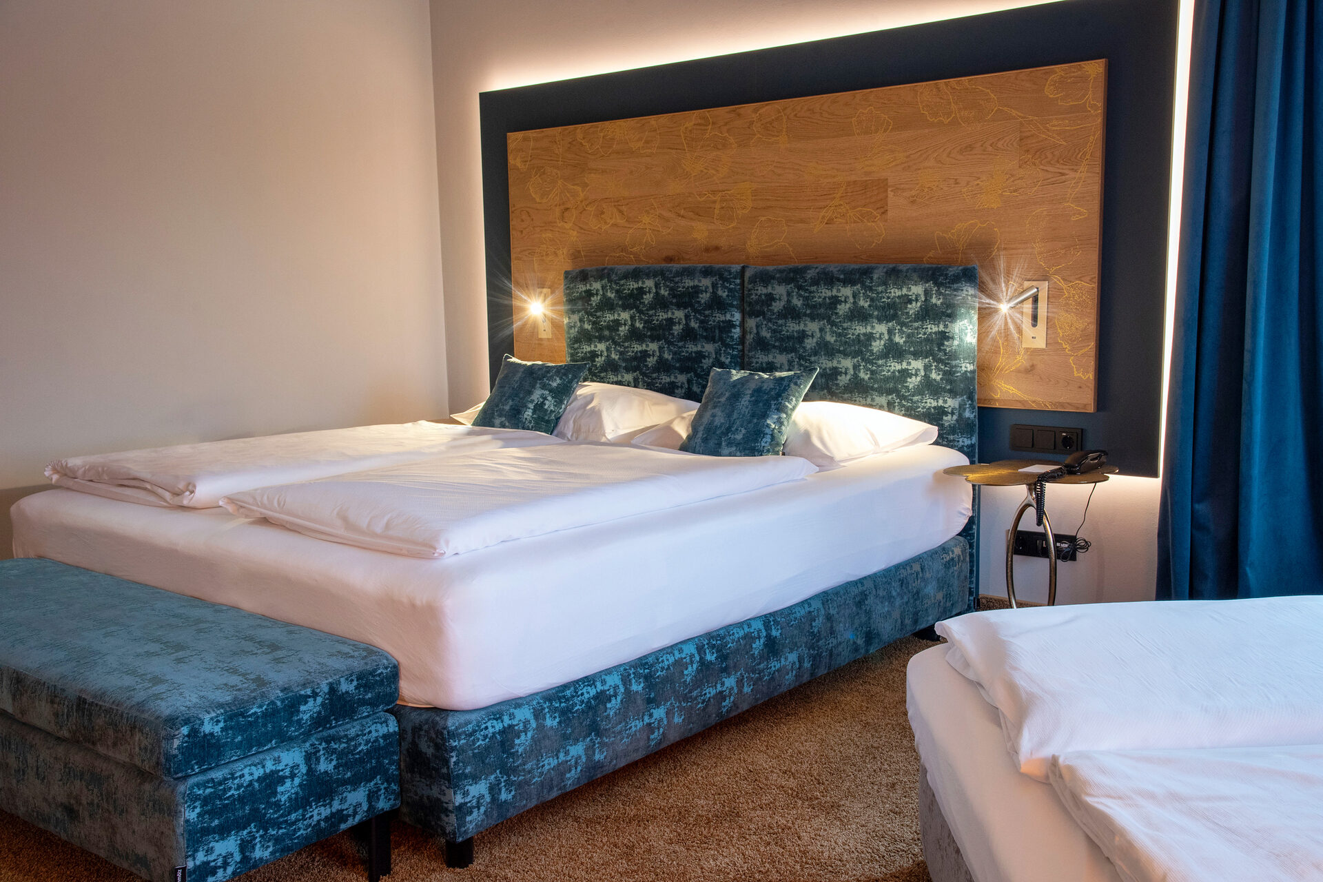 Die Superior Zimmer sind großzügig auf min. 30m² möbliert und mit einem 180x210 cm großen Kingsize Bett mit Premiummatratzen und Topper ausgestattet. Hier können Sie sich so richtig wohlfühlen und entspannen.